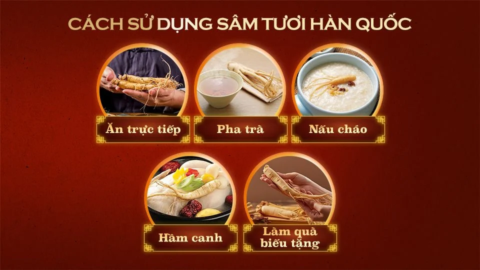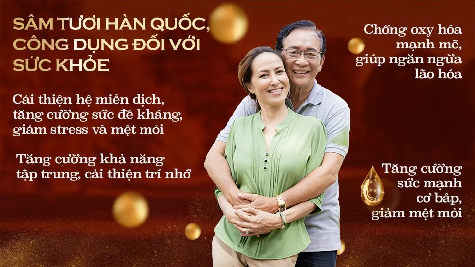- Sâm tươi Hàn Quốc giúp cải thiện hệ miễn dịch, tăng cường sức đề kháng, giảm stress và mệt mỏi. Sử dụng sâm tươi Hàn Quốc thường xuyên có thể giúp bạn có một cơ thể khỏe mạnh, tinh thần sảng khoái và chất lượng cuộc sống được nâng cao.